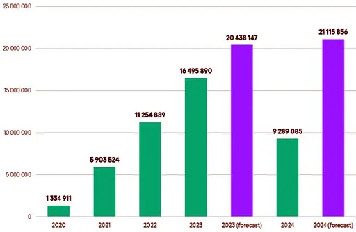 As a result, the longer the timeframe, the more infections from previous years come to light. We estimate that the total number of devices infected with infostealer malware in 2024 will range between 20 million and 25 million, while for 2023, the estimate falls between 18 million and 22 million,” explained Sergey Shcherbel, an expert at Kaspersky Digital Footprint Intelligence.