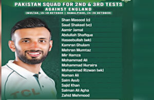 lahore: The Pakistan cricket selectors have unveiled their squad for the second and third Test matches against England, scheduled to take place in Multan and Rawalpindi…