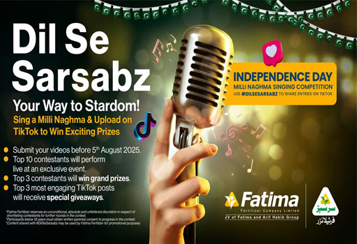 لاہور؛ جولائی 2025 – فاطمہ فرٹیلائزر نے یومِ آزادی منانے کا ایک منفرد اور نیا انداز اپناتے ہوئے نوجوانوں کے لیے ”دل سے سرسبز“ کے نام سے ملی نغمہ مقابلے کا آغاز کر دیاہے۔ اس ملک گیر مقابلے کا مقصد حب الوطنی کے جذبے کو اجاگر کرنا اور نوجوانوں کی تخلیقی صلاحیتوں کو سامنے لانے کا موقع فراہم کرنا ہے۔