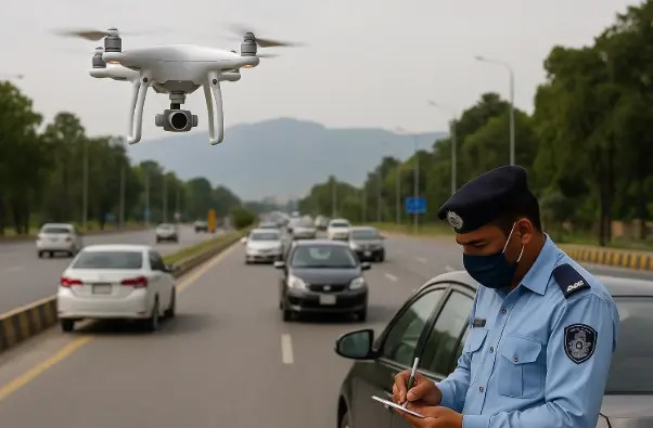 پولیس نے بتایا ہے کہ اسلام آباد ٹریفک پولیس ڈرون کیمروں کی مدد سے ٹریفک قوانین پر عمل درآمد کو یقینی بنارہی ہے، ابتدائی طور پر ڈرون ٹیکنالوجی کا استعمال ایکسپریس وے اور سری نگر ہائی وے پر ہوگا۔