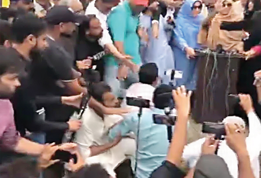 پی ٹی آئی کارکنان نے علیمہ خان کی موجودگی اور نعیم پنجھوتہ کے کہنے پر صحافیوں پر تشدد جس میں سے ایک صحافی طیب بلوچ کو بدترین تشدد کا نشانہ بنایا گیا۔