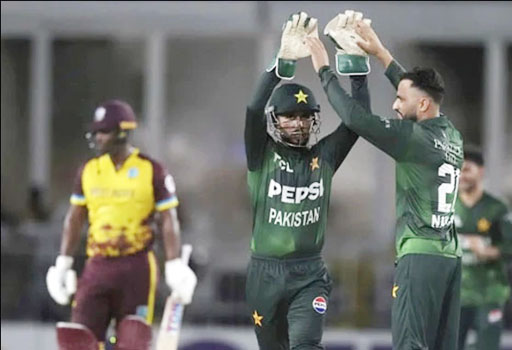 ہدف کے تعاقب میں ویسٹ انڈیز نے خطرناک آغاز کیا، لیکن پاکستانی بولرز کی شاندار کارکردگی نے ان کے عزائم خاک میں ملا دیے۔ ویسٹ انڈیز کی ٹیم مقررہ 20 اوورز میں 7 وکٹوں پر 164 رنز تک محدود رہی۔ محمد نواز نے 3 وکٹیں لے کر میچ کا پانسہ پلٹا، صائم ایوب نے بھی شاندار اسپیل میں 2 کھلاڑیوں کو آؤٹ کیا، جبکہ شاہین آفریدی اور سفیان مقیم نے ایک ایک وکٹ حاصل کی۔
