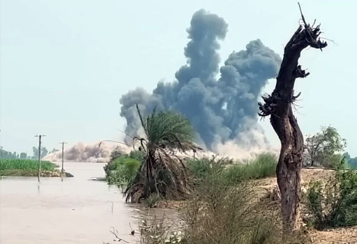 پی ڈی ایم اے پنجاب کے مطابق جھنگ شہر کو بچانے کے لیے دریائے چناب میں سیلاب کے پیش نظر رواز پل کے قریب شگاف ڈال دیا گیا۔