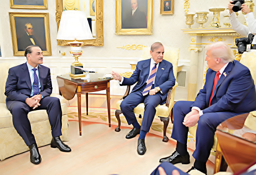 واشنگٹن۔وزیراعظم محمد شہباز شریف اور امریکی صدر ڈونلڈ ٹرمپ کے درمیان وائٹ ہاؤس کے اوول آفس میں ملاقات ہوئی ہے ۔تقریباً ایک گھنٹے تک جاری رہنے والی اس ملاقات میں فیلڈ مارشل سید عاصم منیر بھی وزیرِ اعظم کے ہمراہ موجود تھے جنہوں نے سکیورٹی اور دفاعی امور پر امریکی حکام سے مشاورت کی۔