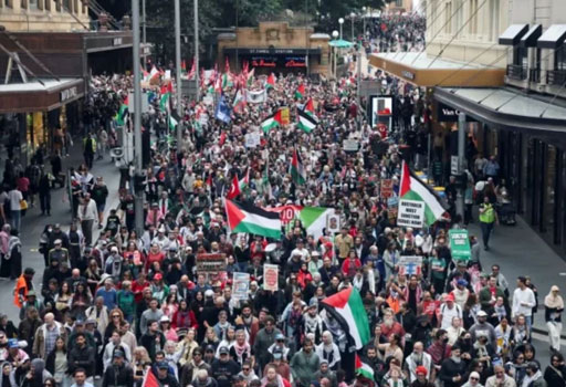 غزہ۔غزہ میں اسرائیلی جارحیت اور مظالم کے خلاف آسٹریلیا بھر میں لاکھوں افراد سڑکوں پر نکل آئے۔